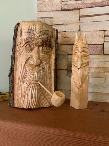 These carvings are about 12-16 inches tall, by 4-6 inch circumference